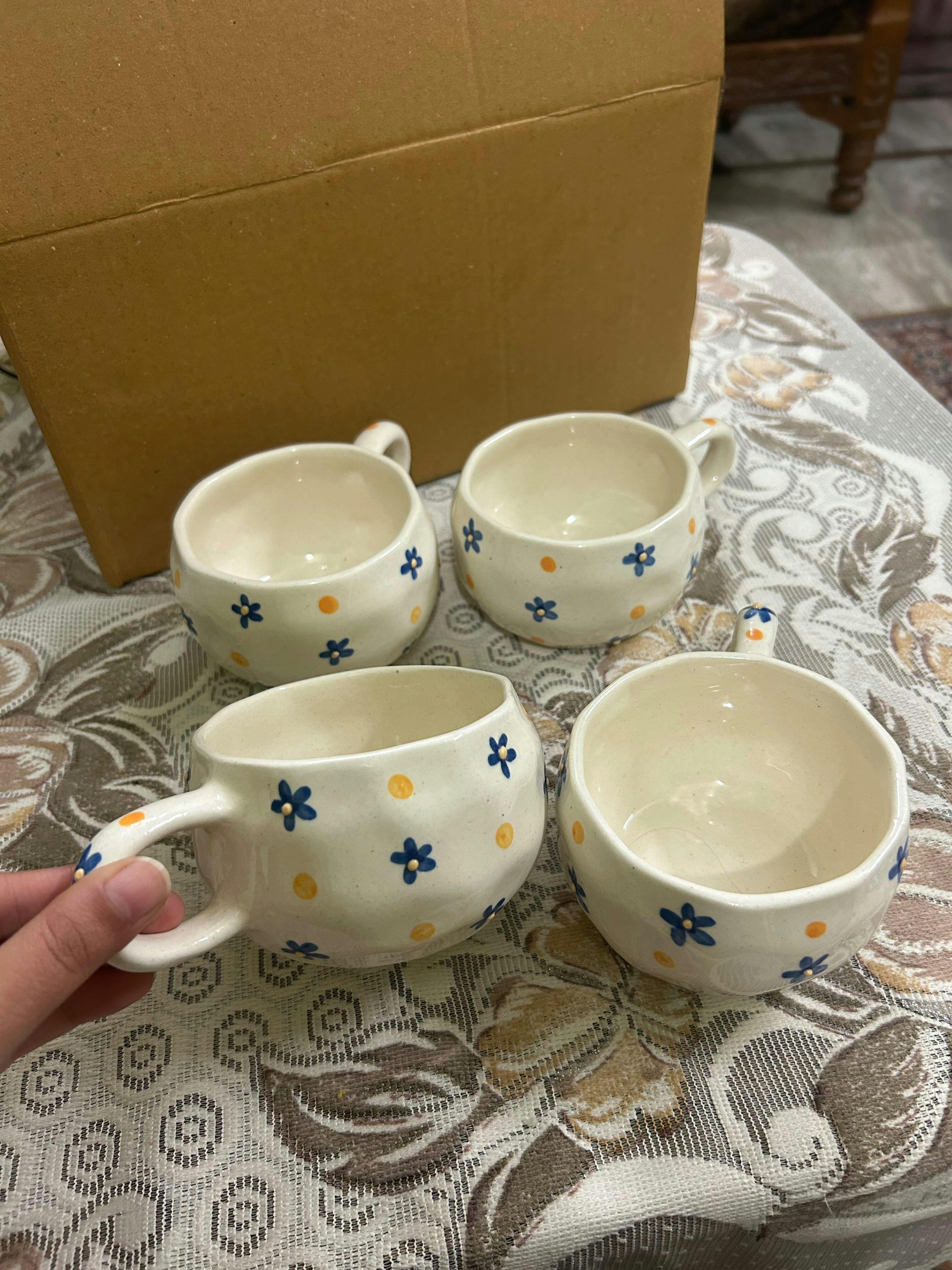Meet your new favorite tea companion, a delightful cup featuring cheerful blue flowers and sunny yellow dots, paired with a matching saucer plate. The playful pattern brings instant joy to your table, while the thoughtful design makes it perfect for everyday sips or special moments. Whether you're hosting guests or treating yourself, this charming duo adds a splash of whimsy to your drinkware collection.